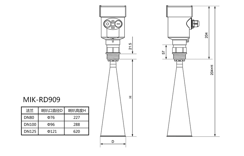 MIK-RD908/909雷达液位计天线发射极窄的微波脉冲,这个脉冲以光速在空间传播,遇到被测介质表面,其部分能量被反射回来,被同一天线接收。
