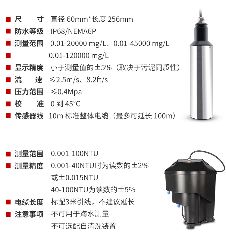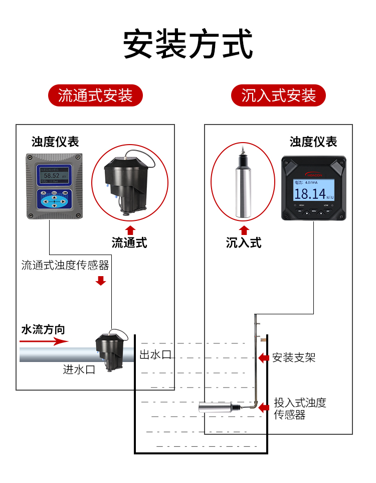 MIK-PTU200传感器基于组合红外吸收散射光线法,应用ISO7027 方法可以连续测定浊度。按照ISO7027 红外双散射光线技术不受色度影响测定浊度值。